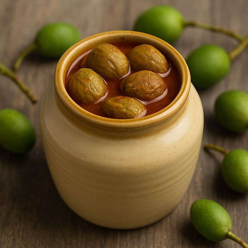 A seasonal delicacy made with tender green mangoes that pairs perfectly with thairu sadham.